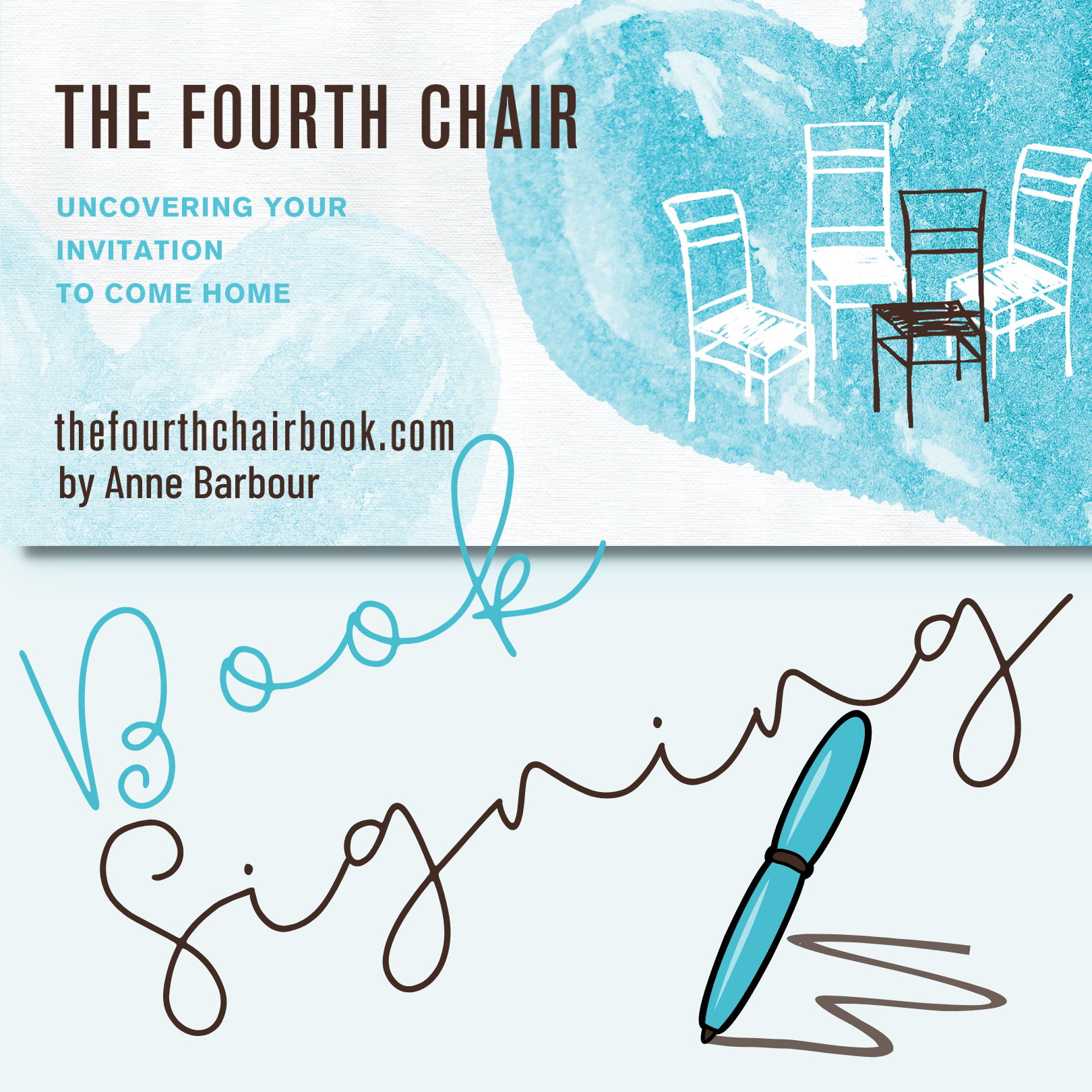 Anne Barbour will be signing her new book, The Fourth Chair | Uncovering Your Invitation to Come Home, after service Sunday on the patio.