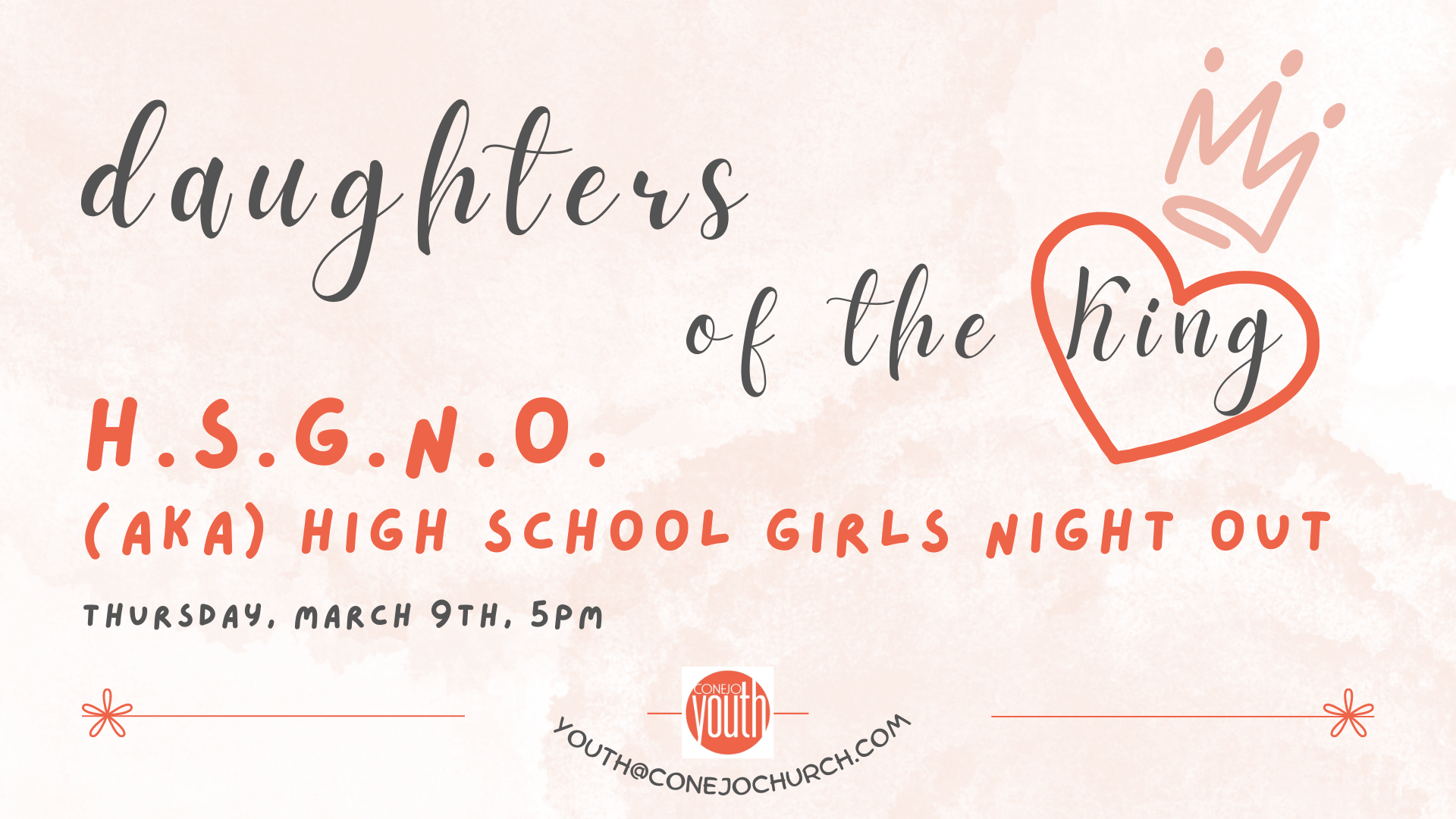 This is an evening for high school girls, hosted by Jessi Bierling on behalf of Conejo Youth.