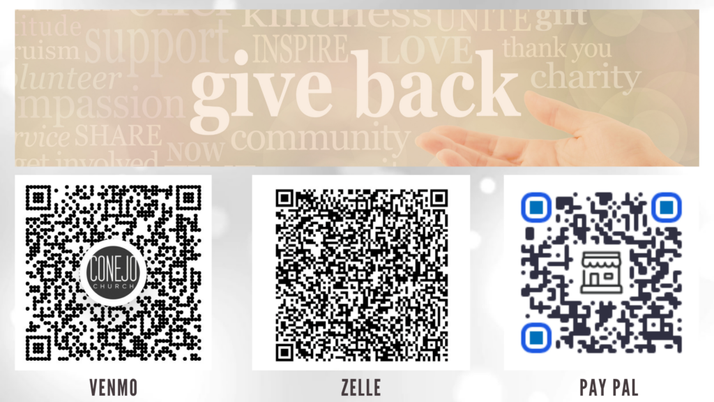 If you prefer to give via snail mail, here’s the address: Conejo Church | PO Box 6953 | Thousand Oaks, CA 91359